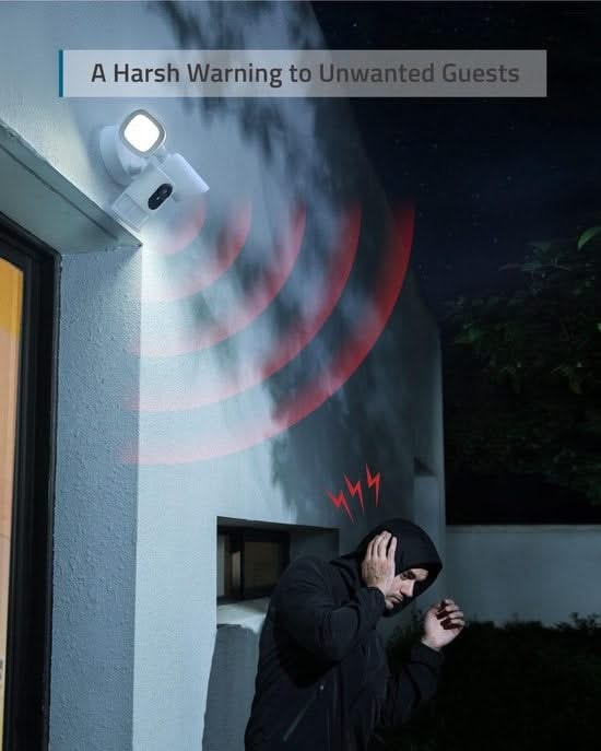 The Eufy Floodlight Camera protects your backyard or driveway from burglary. This smart security camera with built-in floodlight films in 2K resolution. This makes footage somewhat sharper than full HD camera footage. In case of motion detection, the camera shines bright light on unwanted intruders. Thus, night-time images can also be viewed in colour. The built-in siren also goes off immediately on motion detection.
