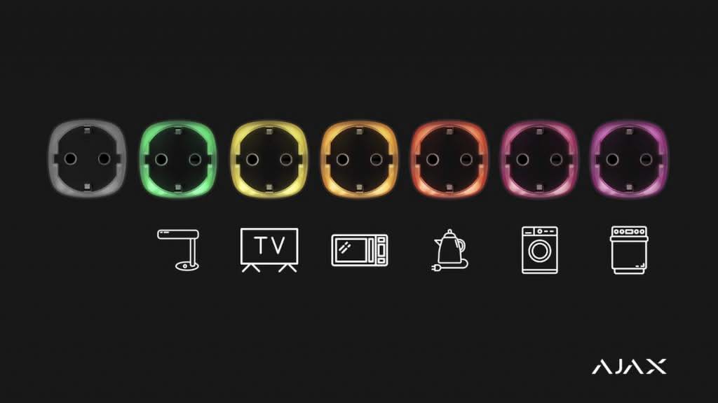 The Ajax Socket is equipped with an LED indicator that shows the amount of energy consumed by the device. The closer to purple, the higher the electricity bill.