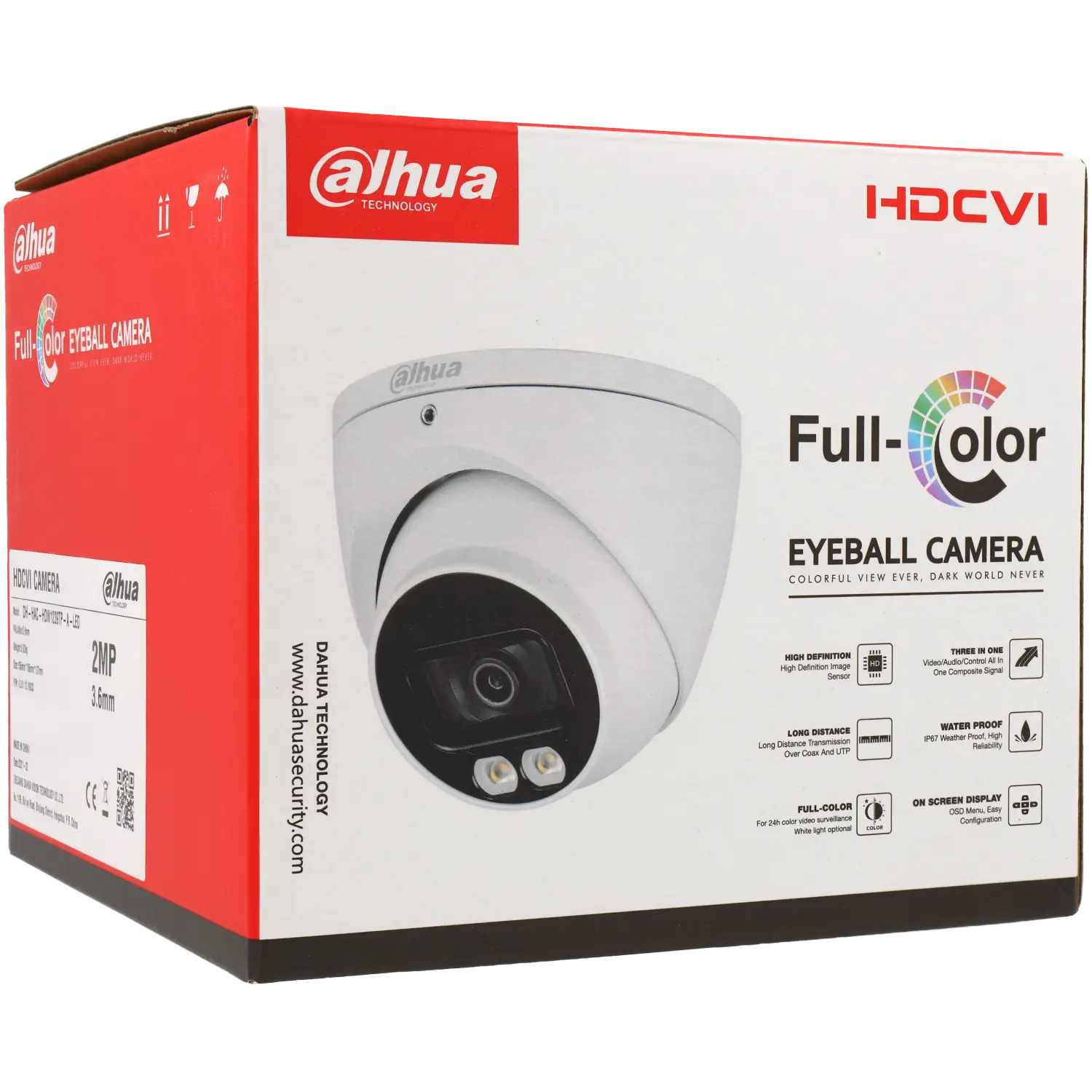 HAC-HDW2249T-A-LED, 2MP 2.8mm, HD-CVI, Eyeball, Full-Color, coax